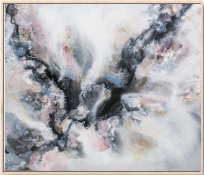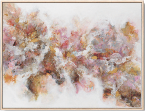 Mixed media on canvas with 24k gold leaf. Framed in oak